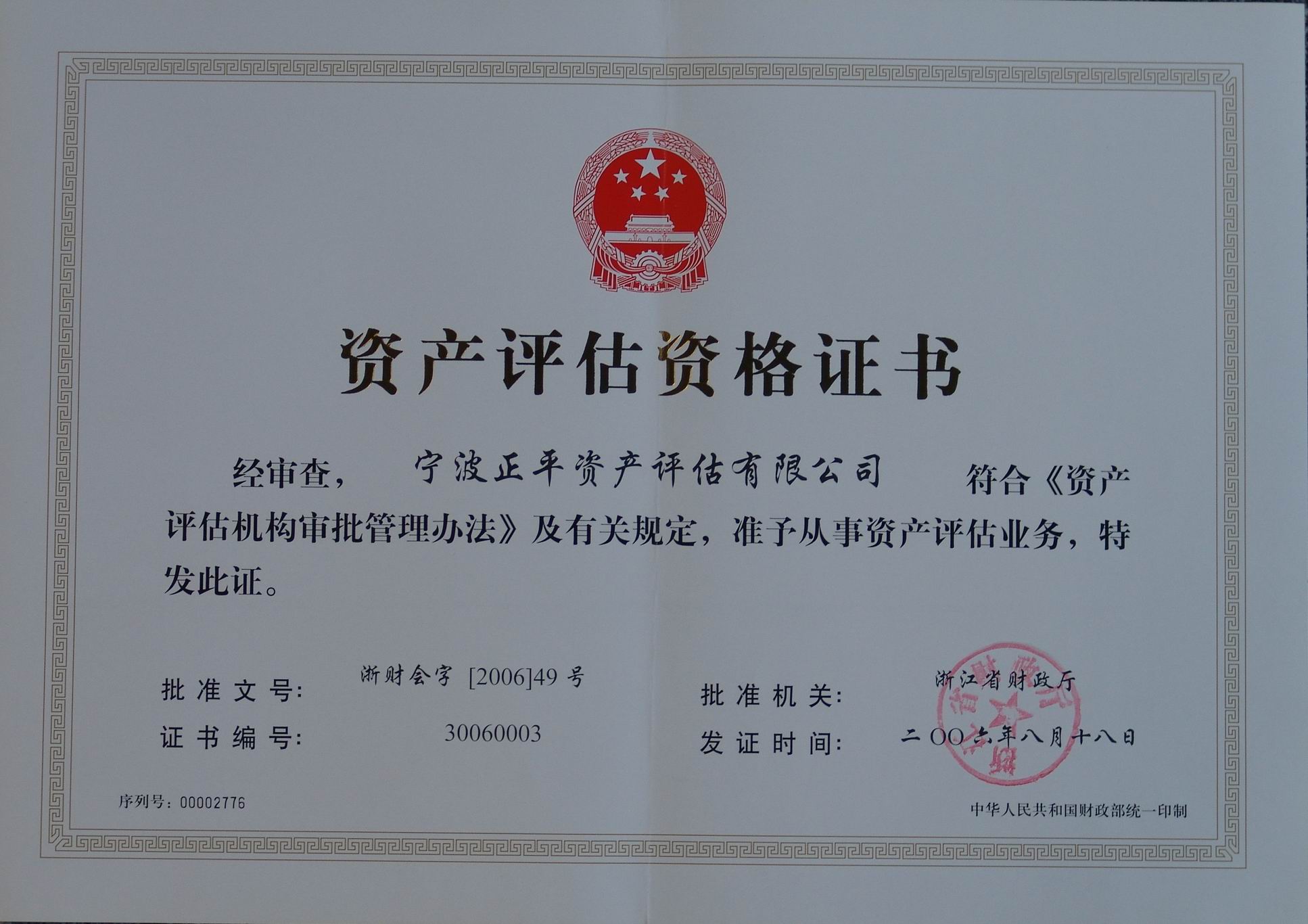 企業(yè)法人營(yíng)業(yè)執(zhí)照 資產(chǎn)評(píng)估資格證書(shū)