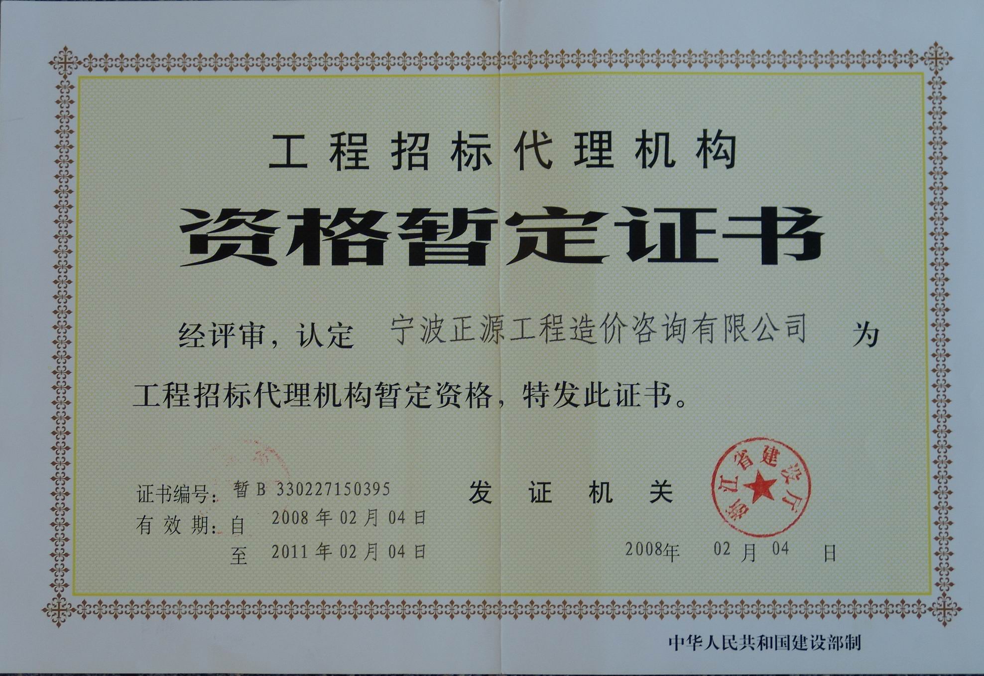 工程招標資質證書